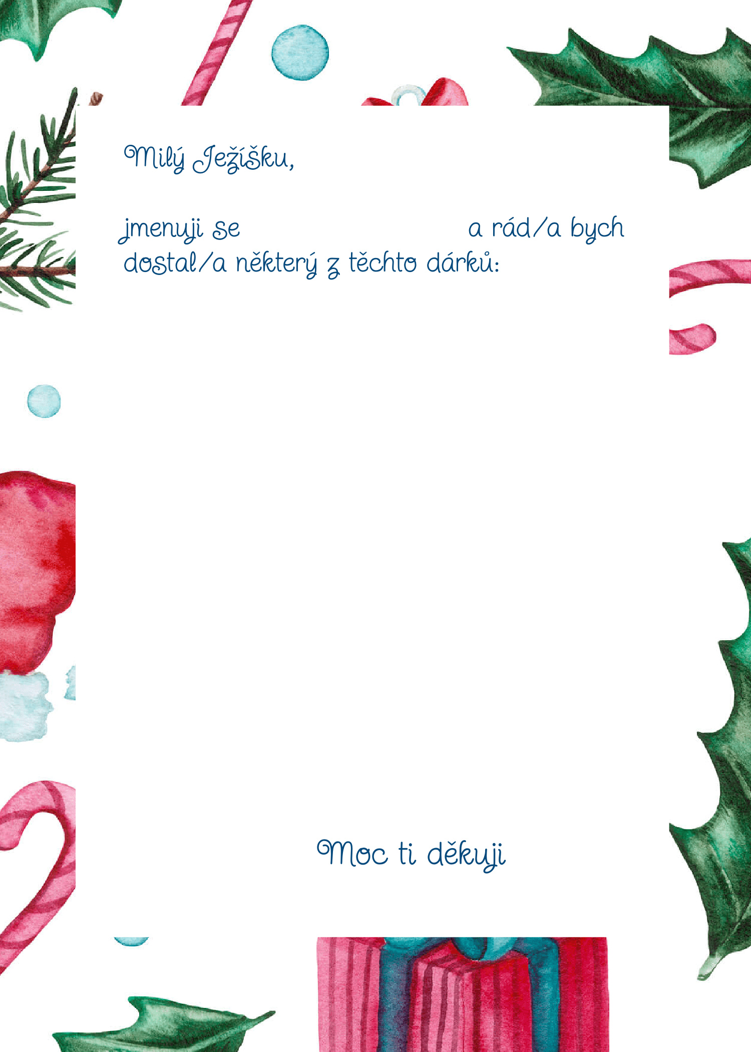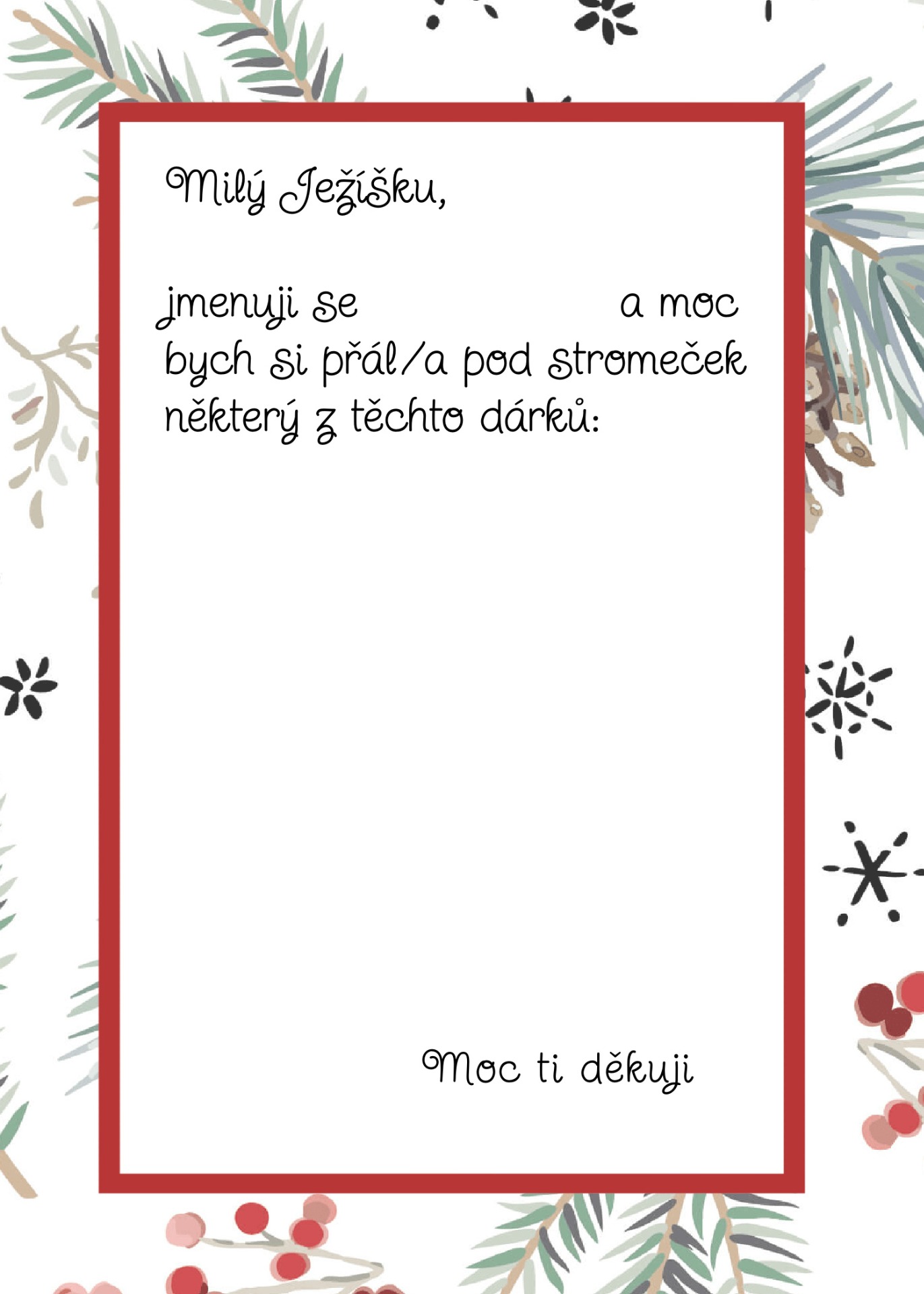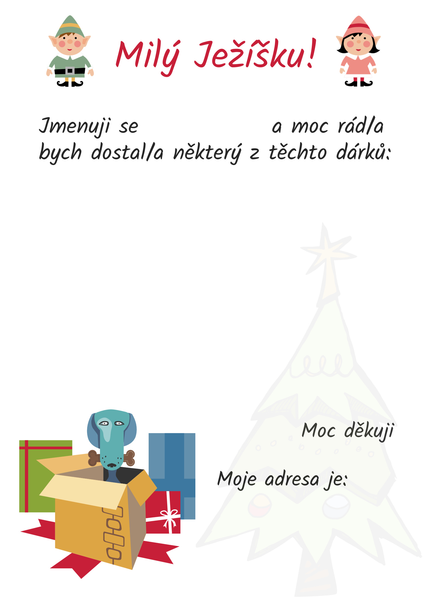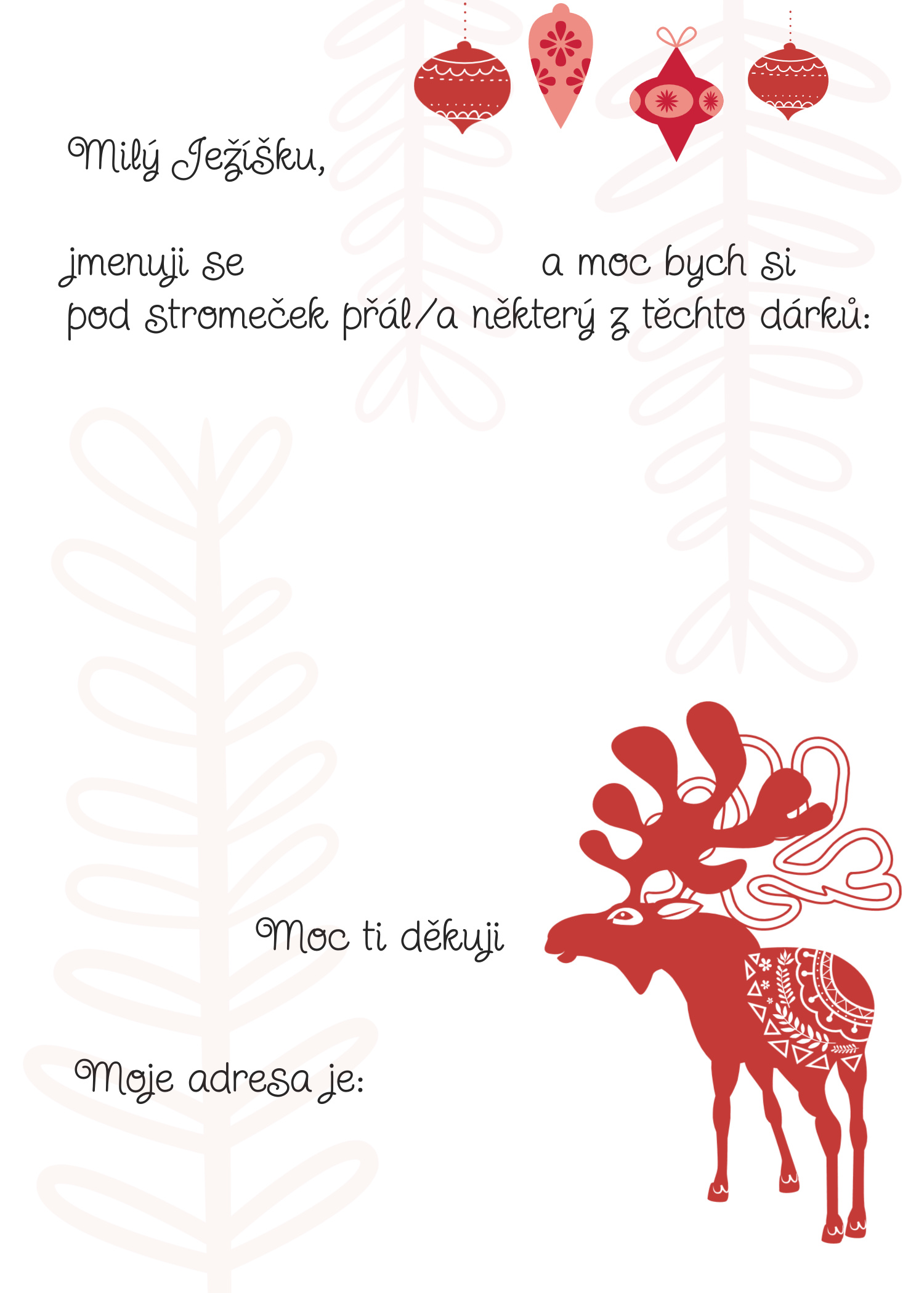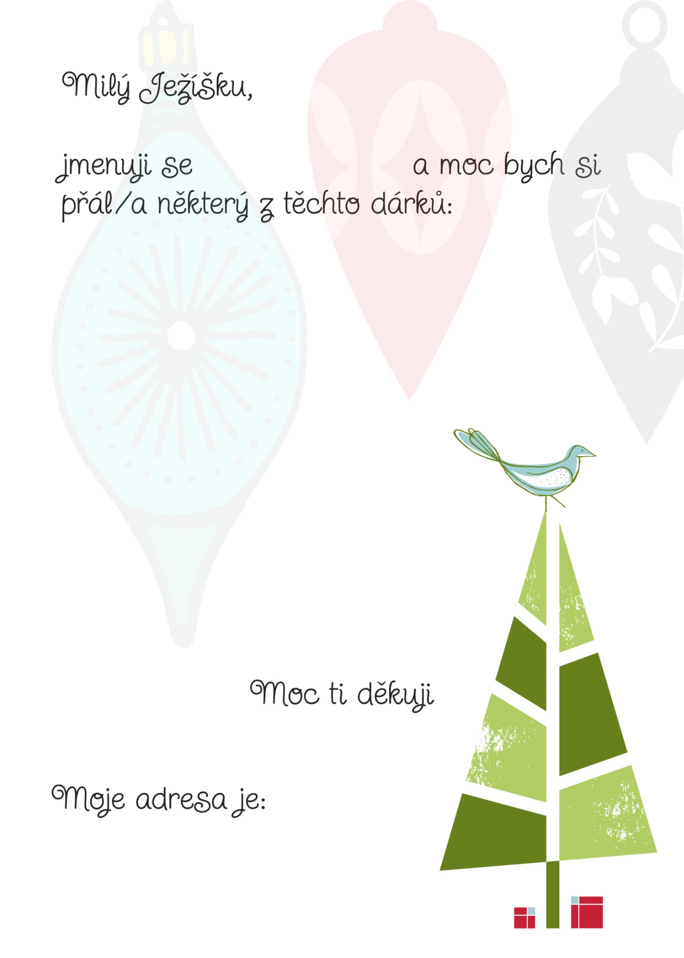 Rok se s rokem opět sešel a Vánoce už jemně klepou na dveře. Pokud jste Ježíškovi zatím nenapsali, vůbec nevadí — připravili jsme pro vás nové, krásné dopisy, které stačí jen stáhnout, vytisknout a vyplnit. Vyberte si ten, který se vám líbí nejvíc, a pak už jen čekejte, až si ho Ježíšek přijde vyzvednout. 🎄✨